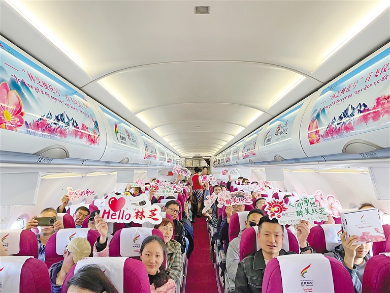 图为旅客乘坐“林芝桃花号”冠名飞机。本报记者 谢筱纯 王珊 摄