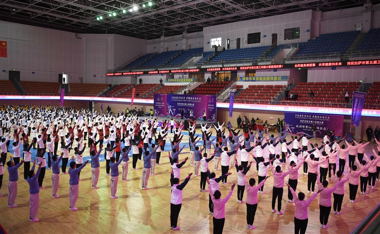 日前,由拉萨市人民政府主办、拉萨市群众文化体育中心协办的“全民健身奏新章 共享健康向未来”的拉萨市第五届工间操大赛,在拉萨市群众文化体育中心篮球主场馆开幕。比赛场上,参赛队员们精神抖擞,动作舒展优美、整齐划一,展现了拉萨市干部职工积极向上的精神风貌。