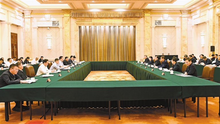 5月9日至10日,西藏自治区党政代表团赴江苏省学习考察。9日,江苏·西藏工作座谈会在南京召开。这是座谈会现场。 本报记者 李洲 摄