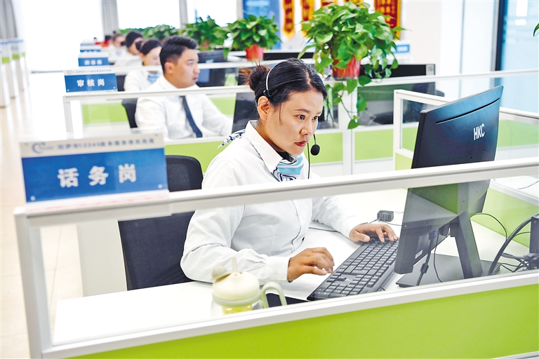图为拉萨市“12345”政务服务便民热线内工作人员在接听群众来电。