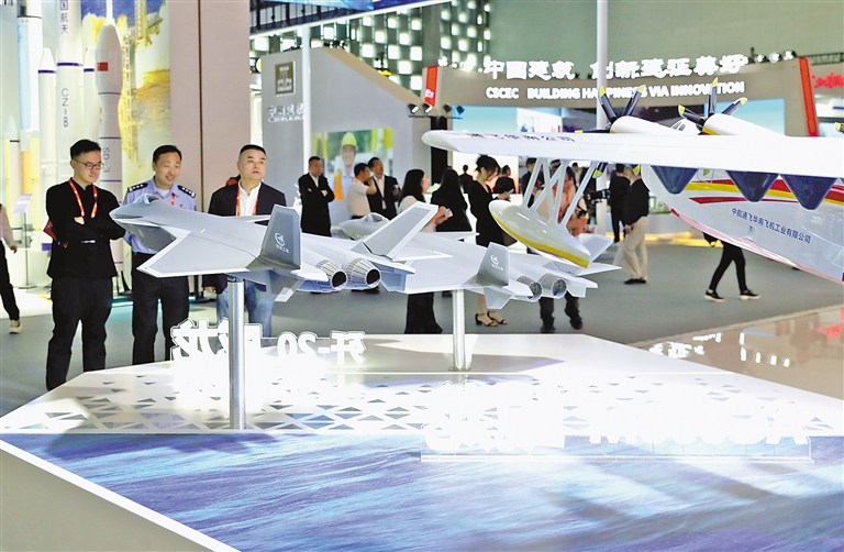 图为5月10日,参观者观看一组飞机模型展品。新华社记者 方喆 摄