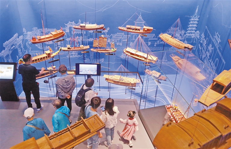 图为5月16日,观众在江苏扬州中国大运河博物馆参观。新华社发(孟德龙 摄)
