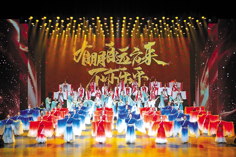 图为演职人员在第八届中俄博览会文艺演出现场进行表演。
