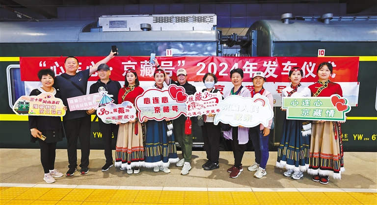 5月19日,由文化和旅游部、国铁集团指导,中共拉萨市委员会、拉萨市人民政府、北京援藏指挥部、中国铁路北京局集团有限公司主办的“心连心·京藏号”旅游专列在北京发车。