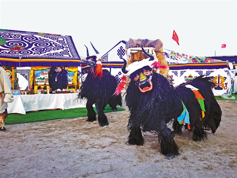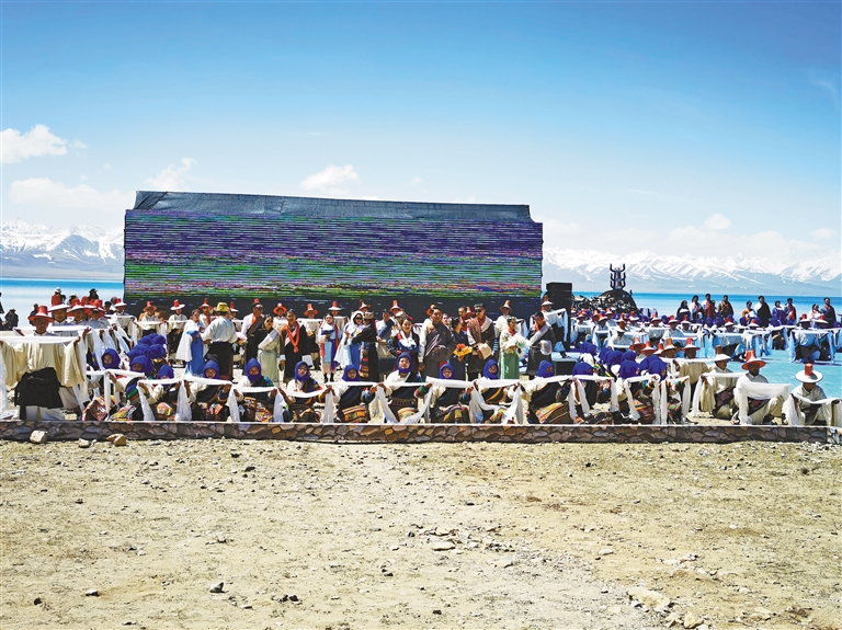 由300名演员将象征平安、吉祥的马、牦牛、牛角、五彩哈达等元素融入表演全过程,艺术地展现独有的开湖祈福场景。