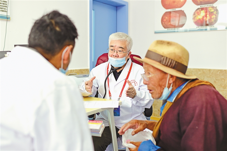 摄影一等奖作品《首都专家义诊 情暖高原乡亲》。作者 旦增努布