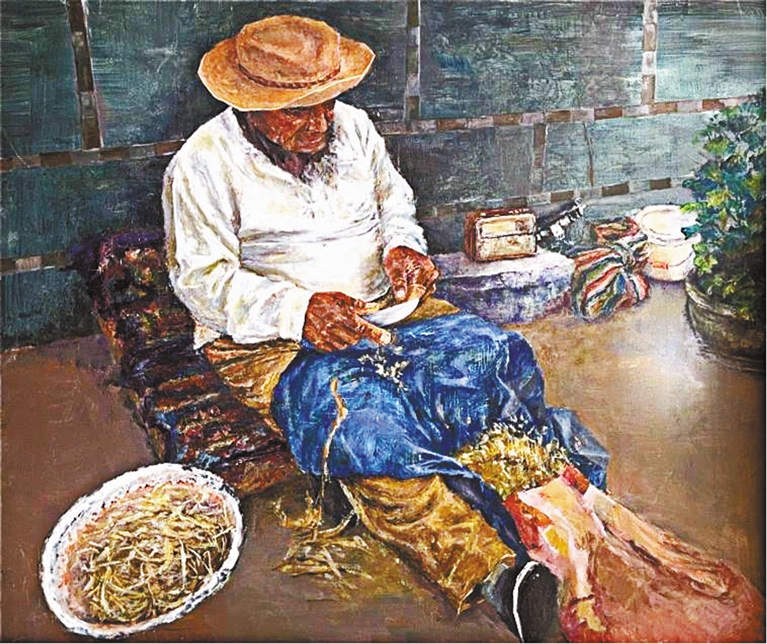 美术作品《幸福西藏·藏纸非遗传承人》。作者 马惜媛