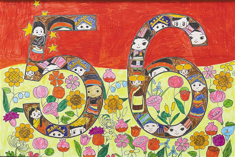 美术作品《五十六个民族 五十六朵花》。作者 扎西平措