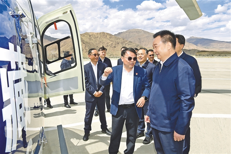 5月23日下午,自治区党委书记王君正前往位于拉萨市达孜区的西藏航空应急救援基地,调研我区通用航空产业发展、综合应急救援体系建设等情况。这是调研现场。本报记者 旦增西旦 摄