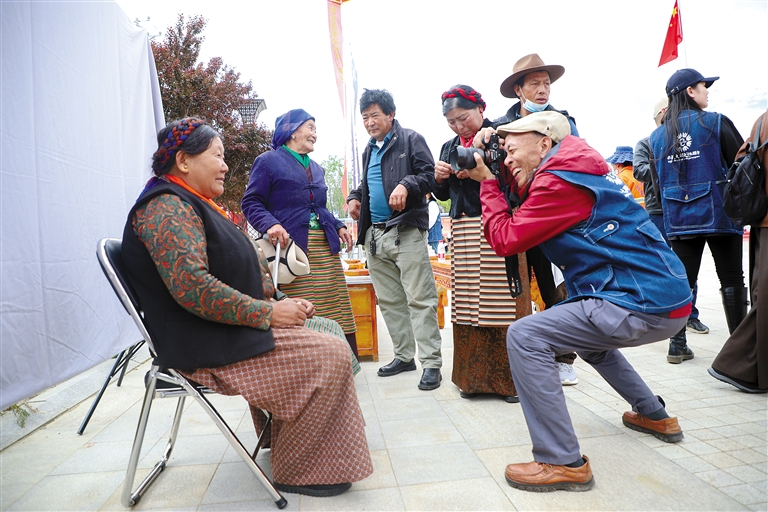 ?摄影家为群众免费拍摄证件照。本报记者 格桑伦珠 摄