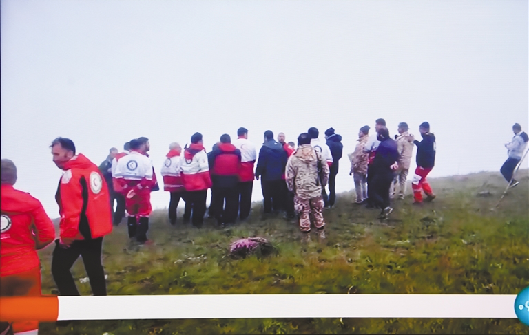 这是5月20日拍摄的伊朗国家电视台播放的救援人员抵达事故现场的画面。新华社记者 沙达提 摄