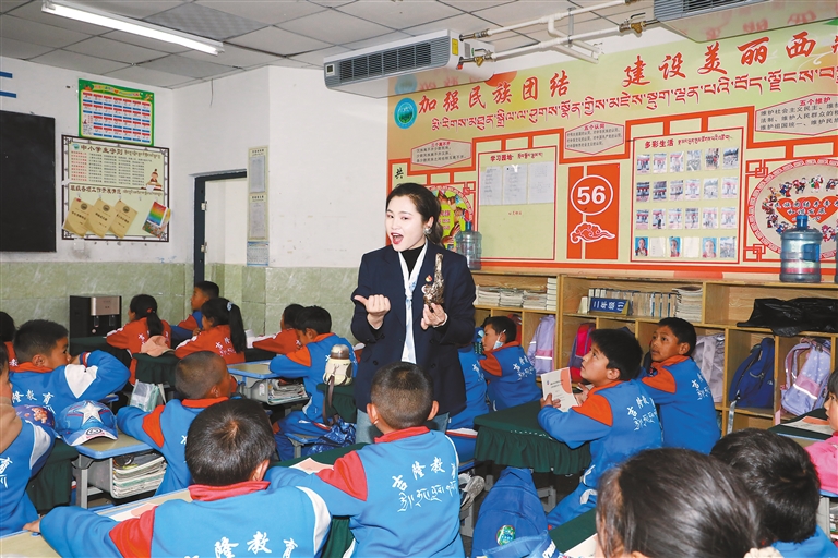 图为工作人员在为学生进行科普教育。本报记者 旦增嘎瓦 摄