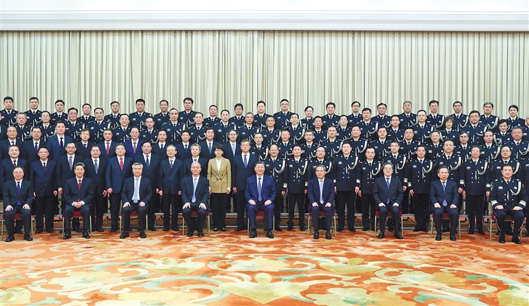 5月28日,党和国家领导人习近平、李强、蔡奇、丁薛祥、李希等在北京人民大会堂会见全国公安工作会议代表。 新华社记者 鞠鹏 摄