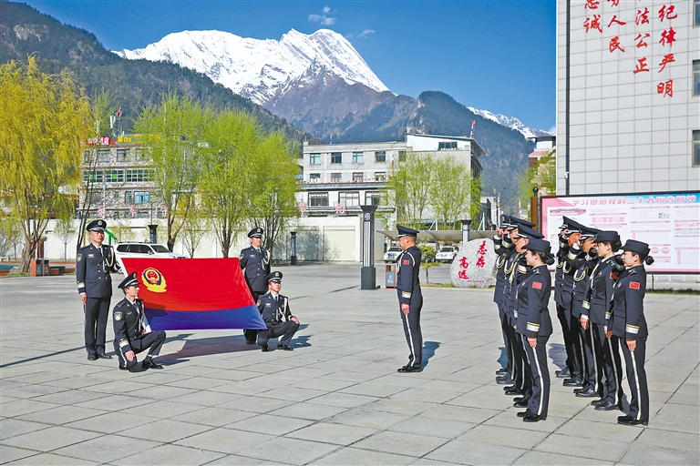 近日,吉隆出入境边防检查站移民管理警察与驻地海关缉私警察共同重温入警誓词。本报记者 旦增兰泽 本报通讯员 肖富贵 摄