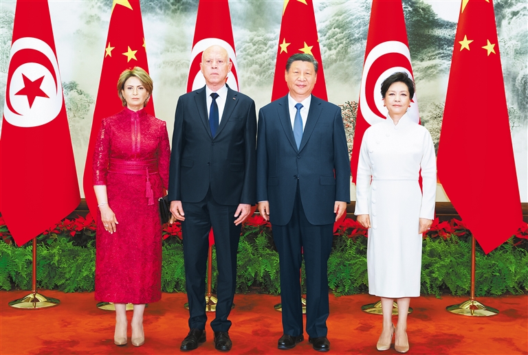 习近平强调,中方支持突尼斯走符合自身国情的发展道路,支持突方独立自主推进改革进程,将命运牢牢掌握在自己手中。中方愿同突方加强发展战略对接,深化基础设施建设、新能源等领域合作,培育医疗卫生、绿色发展、水资源、农业等领域合作新动能,推动两国高质量共建“一带一路”取得更多成果,欢迎更多突尼斯优质特色产品进入中国市场。中方愿继续向突尼斯派遣高水平医疗队,同突方深化教育、旅游等领域合作,密切人文交流。双方要同“全球南方”国家一道,加强团结协作,践行真正的多边主义,倡导平等有序的世界多极化和普惠包容的经济全球化,实现共同发展。中方愿同突方一道努力,建好中阿合作论坛、中非合作论坛,为中阿关系发展注入新动力,携手构建高水平中非命运共同体。(下转第二版)(上接第一版)