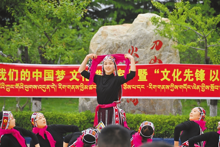 图为:活动现场,演员倾情表演歌舞节目。本报记者 胡文 摄