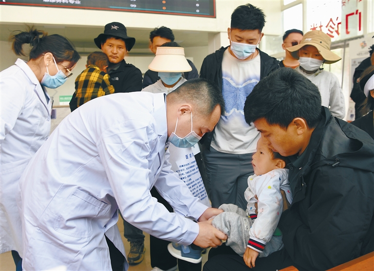 图为首都儿科研究所附属儿童医院医生为孩子看诊。本报记者 王敏 摄