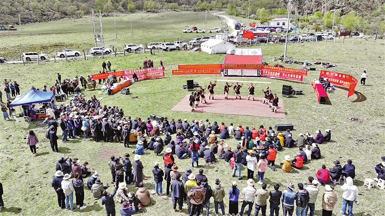 为丰富基层群众精神文化生活,近日,林芝市文化科技卫生“三下乡”活动走进工布江达县仲莎乡巴朗村虫草采挖点,为仲莎乡500余名农牧民群众提供了精彩的文艺演出和免费的医疗服务。