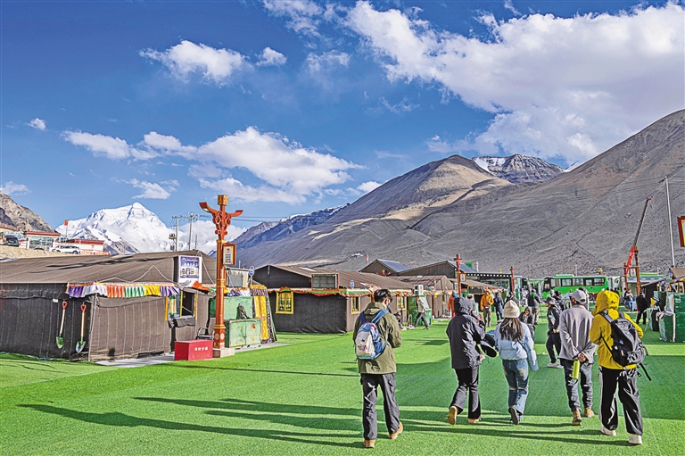 图为游客行走在珠峰游客大本营。 新华社记者 孙非 摄