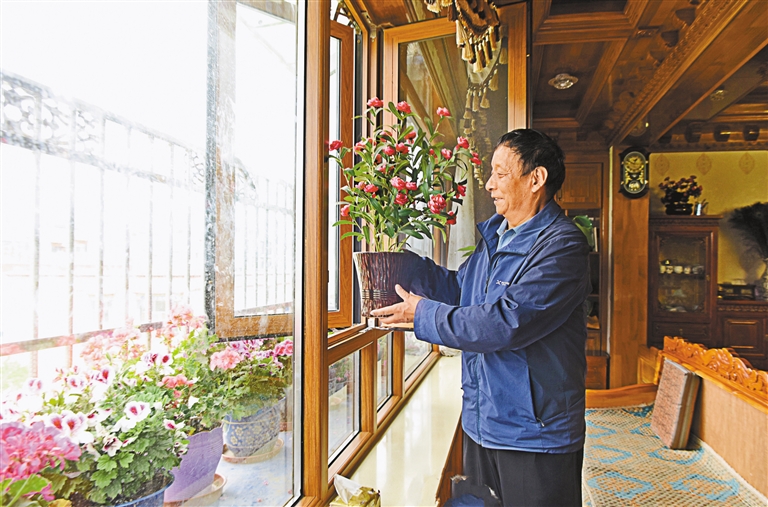 图为拉萨市城关区加荣棚户区小康安居园的居民拉琼正在家里侍弄花草。 本报记者 蒋盖 摄