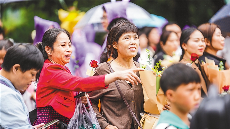 ?图为6月9日,考生亲友在贵阳市乌当中学考点外等候。