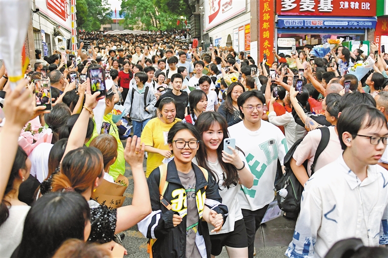 ▲图为6月9日,在湖南省娄底市冷水江市第一中学考点,考生在考试结束后走出考场。