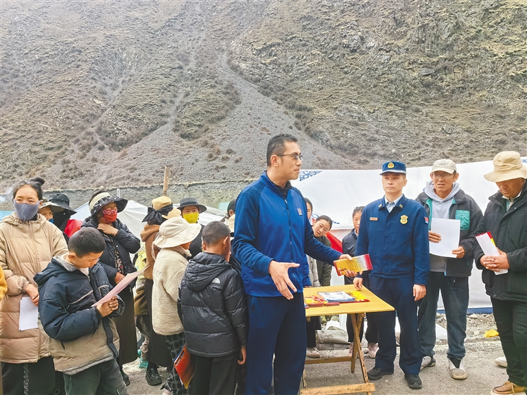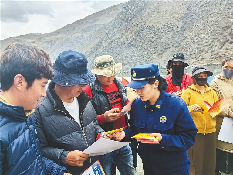 图为宣传员在虫草采挖点向农牧民群众科普消防安全知识。肖暄 摄