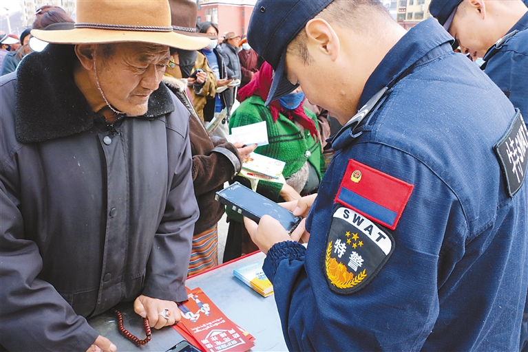 为营造平安、和谐、稳定的社会环境,近日,嘉黎县公安局机关党支部联合特警大队党支部组织党员民(辅)警深入社区开展“立足岗位作贡献 我为群众办实事”主题党日活动,向广大群众宣传普及安全防范知识。