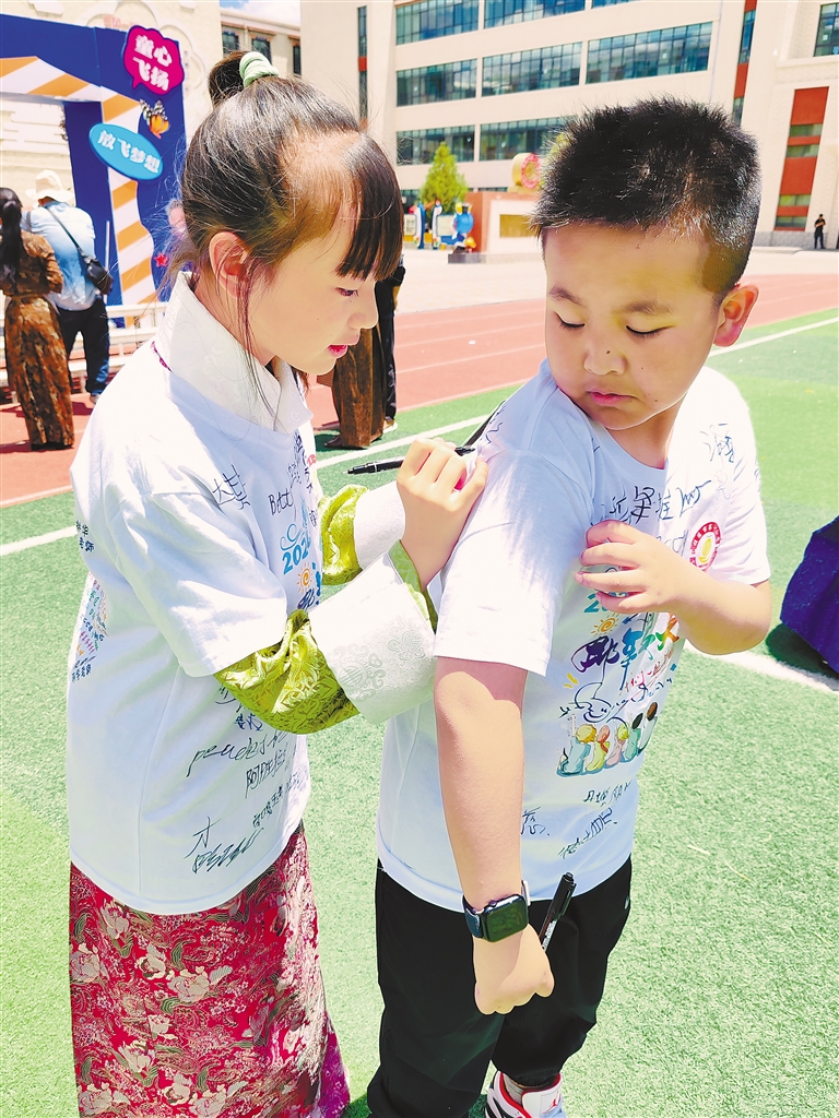 图为毕业生签名留念。 本报通讯员 胡小雨 摄