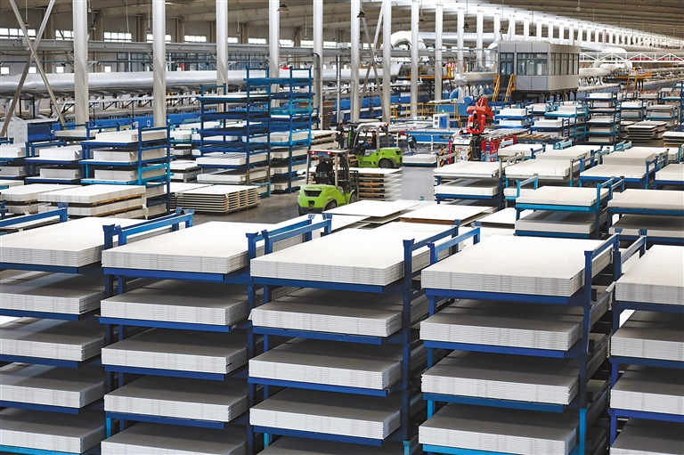 图为6月13日,工人在卢龙县一家环保型建设材料企业的生产车间工作。