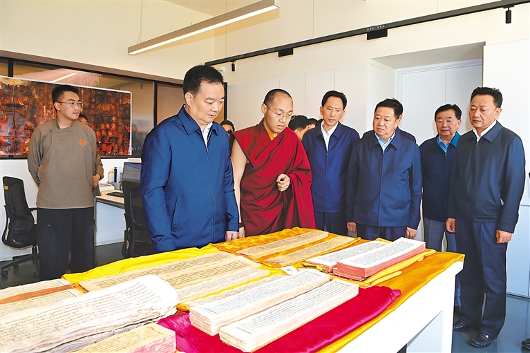 6月12日上午,自治区党委书记王君正在拉萨市堆龙德庆区、经开区调研。这是王君正在乃朗寺调研文物古籍保护情况。 本报记者 旦增西旦 摄