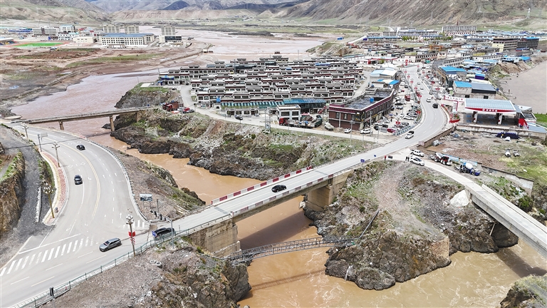 近年来,那曲市交通基础设施建设快速发展,运输服务日益便捷,出行从“走得了”到“走得好”,运载从“运得出”到“运得畅”,为经济社会高质量发展提供了有力支撑。 图为那曲市索县索曲河与益曲河交汇处畅通的道路和桥梁。本报记者 赵书彬 万靖 摄