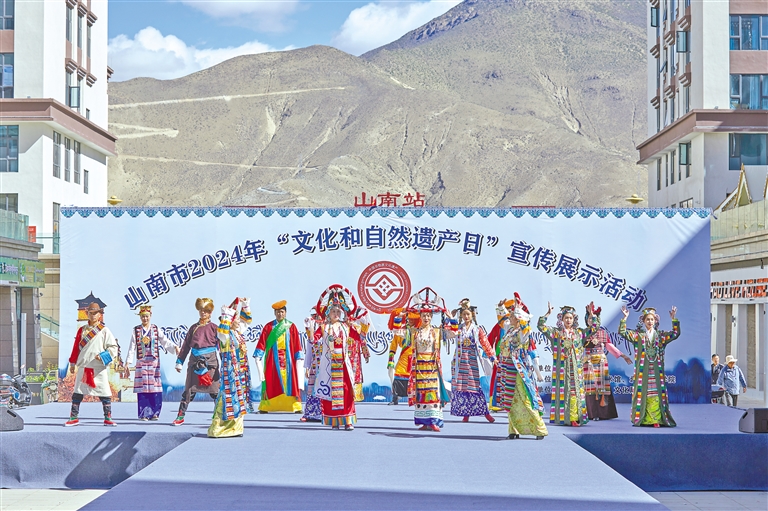 图为山南市2024年“文化和自然遗产日”宣传展示活动中,山南传统服饰展演与“雅鲁藏布”现代藏装动态展演。 本报记者 巴桑旺姆 摄