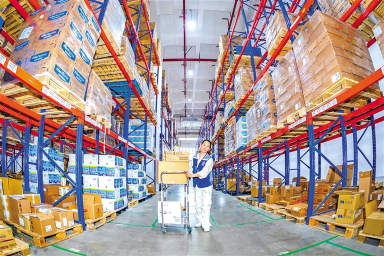 图为6月18日,在浙江省温州综合保税区京东仓内,工作人员按照订单配送货品。新华社发