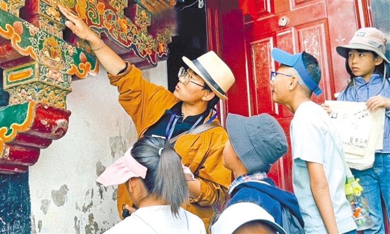 “古城寻宝大作战”拉萨城市考古线下漫游活动现场。该活动以丈量古城、记录古城、描摹古城、看见古城为内容,带领小朋友与家长,用双脚丈量、以五感触碰,以歌谣、地图、老照片看见古城过去的历史,通过笔尖描摹属于每一个人的独家古城地图。