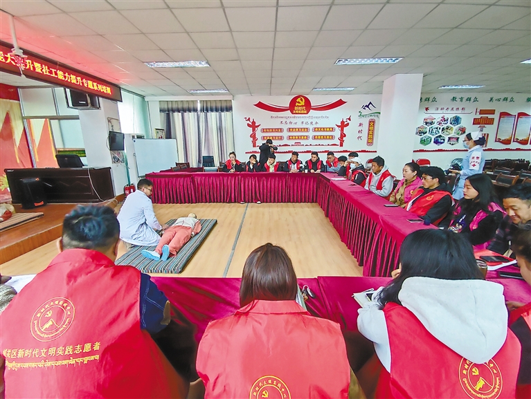 为进一步普及应急救护知识,提升救助能力,近日,拉萨市城关区扎细街道雄嘎社区邀请西藏武警总队医院的医护人员为社区工作人员开展应急救护培训。