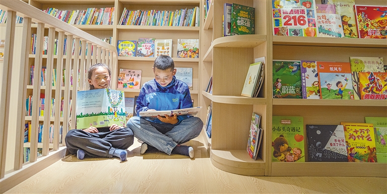 孩子们在“温暖嘉·色尼城市书房”内阅读儿童绘本。