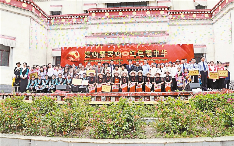 为热烈庆祝中国共产党成立103周年,进一步增强全镇党员干部群众的凝聚力和向心力,继承和发扬党的光荣传统,6月26日,察隅县竹瓦根镇“党心聚民心 红色耀中华”庆祝“七一”建党节文艺汇演在嘎巴广场隆重举行。辖区内18支文艺文化志愿服务队和全镇党员干部群众500余人参加。
