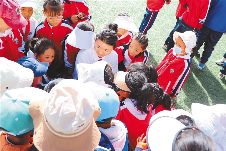 图为法院干警与学生们互动现场。本报记者 武沛涛 摄