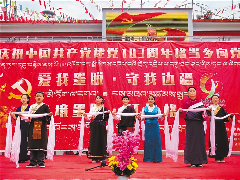 日喀则市聂拉木县塔杰林村开展庆祝中国共产党成立103周年暨“七一”主题党日活动。活动期间,农牧民党员穿上红马甲、拿起编织袋,在村庄干道、村委会周边,认真开展垃圾清理“党员志愿服务”活动。随后,党员们身着节日盛装,齐聚在村委会广场,开展“升国旗、唱国歌”仪式,重温入党誓词。自治区政协办公厅驻塔杰林村工作队还围绕“开展党纪学习教育、推进乡村振兴”主题,举办了专题党课。