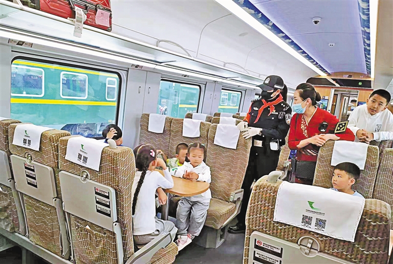 列车乘务员与乘客热情互动。 本报记者 王莉 摄