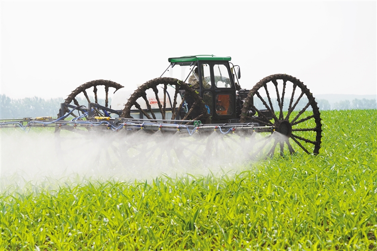 黑龙江南部地区持续出现的降雨天气给农业生产带来不利影响。位于三江平原腹地的北大荒农业股份有限公司友谊分公司采取措施积极应对,全力保障粮食稳产、增产。图为北大荒农业股份有限公司友谊分公司第三管理区一旱田地块,机械设备在进行除草作业。新华社记者 王松 摄