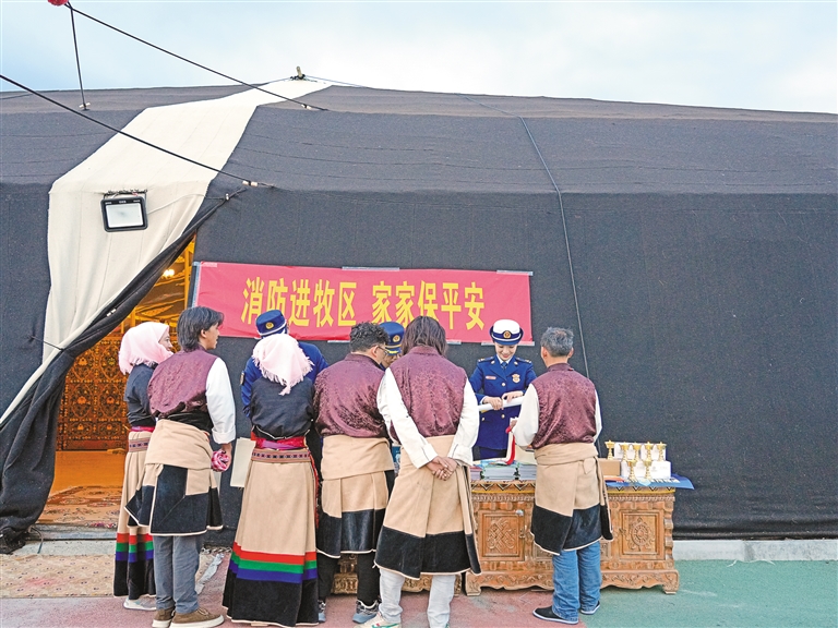 图为“消防进牧区 家家保平安”主题宣传活动现场。肖暄 摄