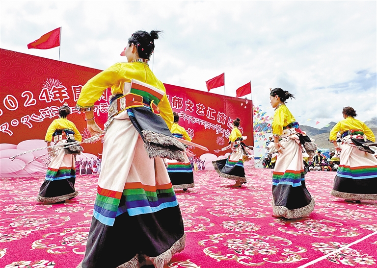 图为开幕式上,演员在表演节目。本报记者 旦增嘎瓦 摄