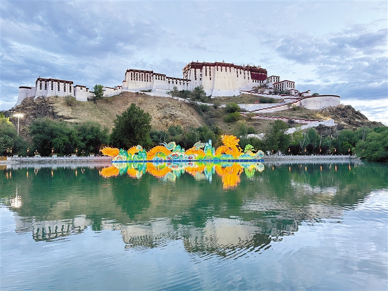 “非常开心不用去江苏就能看到秦淮灯灯组,水中倒映着布达拉宫和灯组相映成趣,真是独具匠心的视觉盛宴。”市民次仁德吉一边拍照一边说。