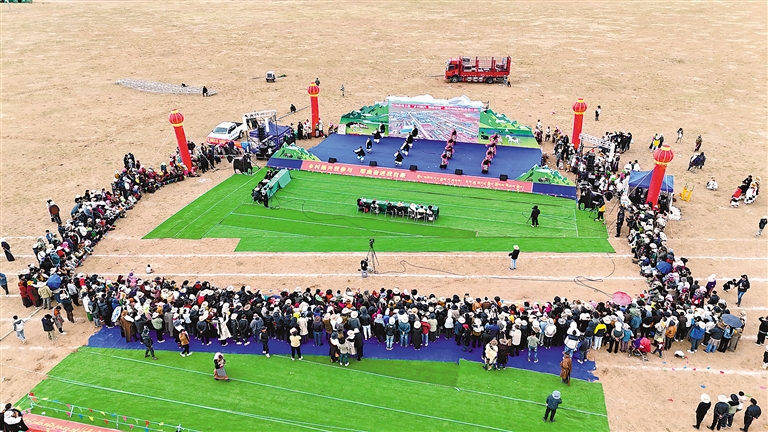 那曲“乡村振兴 那曲奋进”活动进一步激发了广大牧民群众发展热情,营造了“比学赶超”的浓厚氛围。 图为双湖县“乡村振兴 那曲奋进”活动现场,群众正在进行传统舞蹈比赛。本报记者 赵书彬 摄