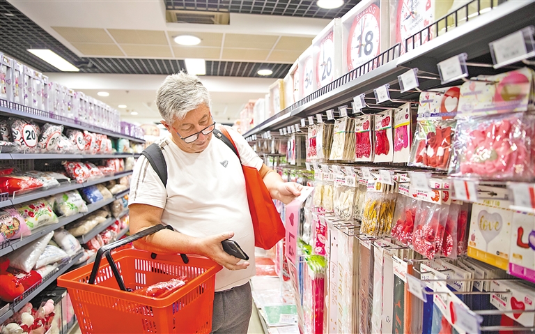 图为2024年4月29日,在匈牙利布达佩斯,一名男子在中欧商贸物流合作园区的中国商品交易展示中心内购物。中欧商贸物流合作园区是中国在欧洲地区建设的首个商贸物流型境外经贸合作区,也是集商贸展示与交易、物流运输与仓储、产业投资与合作功能于一体的中欧企业双向互动平台。 新华社记者 张帆 摄