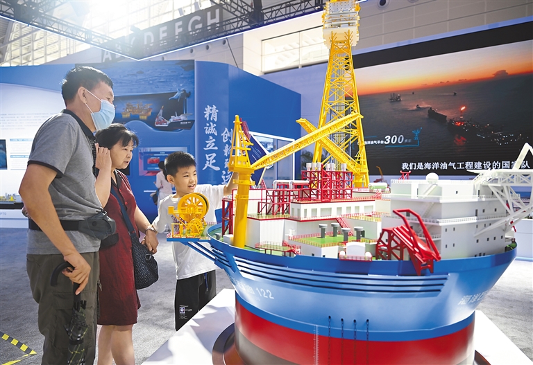 7月12日,在2024天津国际航运产业博览会上,“海葵一号”“海基二号”“深海一号”等“国之重器”模型成为展会焦点,吸引众多参观者了解我国在海洋装备领域取得的创新成果。