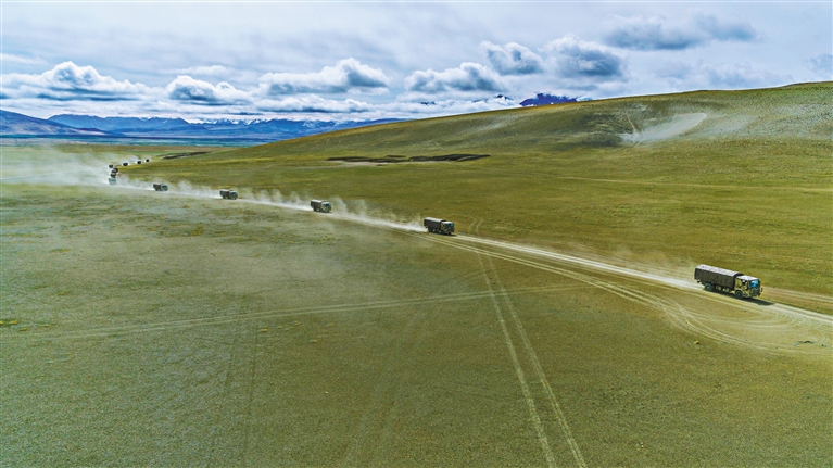 如今,西藏通了铁路、修了机场,但汽车仍是主要运输工具。在如血管般密布西藏高原的运输线上,已带着“西藏高原钢铁运输班”荣誉的一连二班仍源源不断把各类必需物资输送到高原,助力军地建设不断跨越发展。