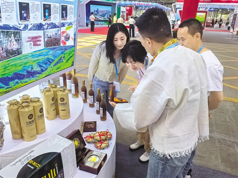 今年5月底,昌都市蓝天圣洁农业发展集团有限公司选取藏香鸡、葡萄酒、藏香、当归等300余种优质农特产品走进第六届中国西部国际投资贸易洽谈会,促成两地8家企业现场签署2300万元产销合作协议。